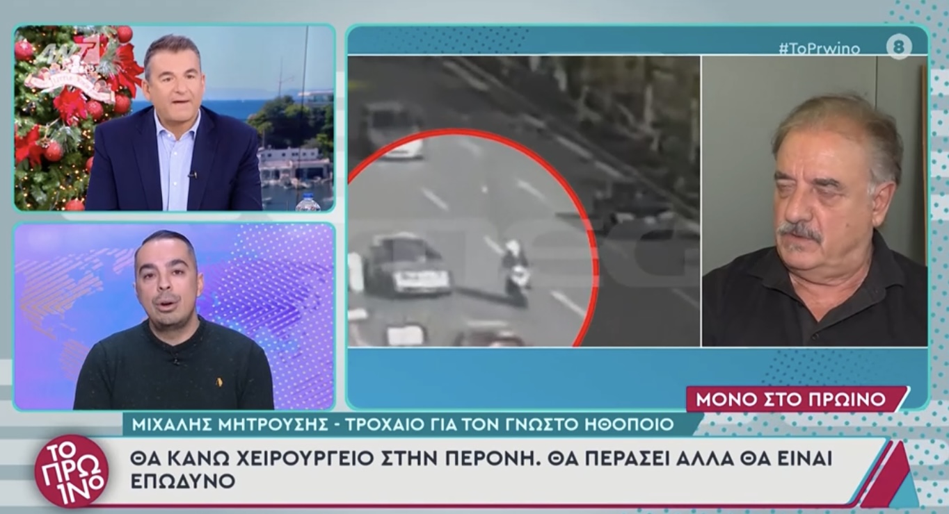 Ο γνωστός και αγαπημένος ηθοποιός Μιχάλης Μητρούσης είναι ο οδηγός της μηχανής που τραυματίστηκε στο τροχαίο της Παρασκευής στην Λεωφόρο Συγγρού.