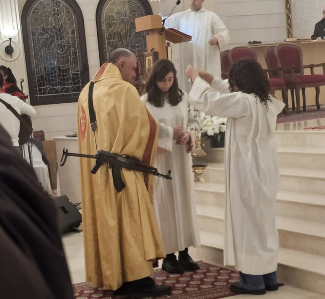 Για να καταλάβετε τι ακριβώς συμβαίνει αυτές τις ώρες στην Συρία, καθώς η φρικτή πραγματικότητα κρύβεται μεθοδικά από τα συστημικά ΜΜΕ, δείτε το βίντεο που ακολουθεί. Είναι η χριστουγεννιάτικη λειτουργία στην εκκλησία των Μαρωνιτών στη Συρία. Ο ιερέας είναι ζωσμένος κυριολεκτικά, αφού τέλει την λειτουργία έχοντας πολεμικό τυφέκιο στον ώμο.