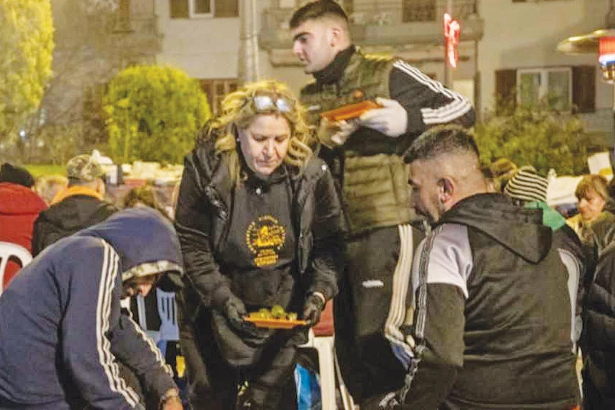 Η κυρία Φράγκου μοιράζοντας φαγητό σε αστέγους της Θεσσαλονίκης