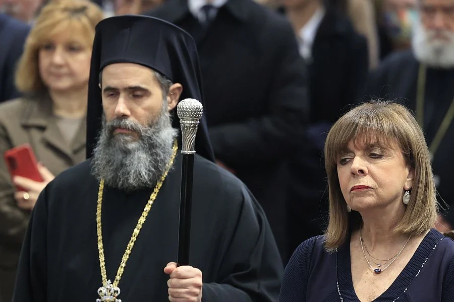 Αίσθηση προκάλεσε η εμφάνιση της Κατερίνας Σακελλαροπούλου για πρώτη φορά στην τελετή κοπής της πρωτοχρονιάτικης βασιλόπιτας στην Ιερά Αρχιεπισκοπή Αθηνών! Όσοι την είδαν έτριβαν τα μάτια τους, αφού η πρόεδρος της Δημοκρατίας δεν έχει παραβρεθεί ποτέ ξανά ως τώρα σε αντίστοιχη τελετή της Αρχιεπισκοπής.