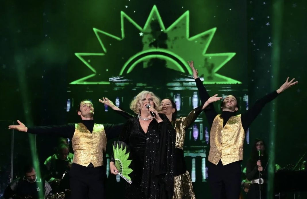 Στην χθεσινή γιορτή στο Σύνταγμα η Μάρθα Φριντζήλα,τραγούδησε το “Τέρμα τα παράπονα” της Λίτσας Διαμάντη κρατώντας μία βεντάλια με τον ήλιο του ΠΑΣΟΚ.