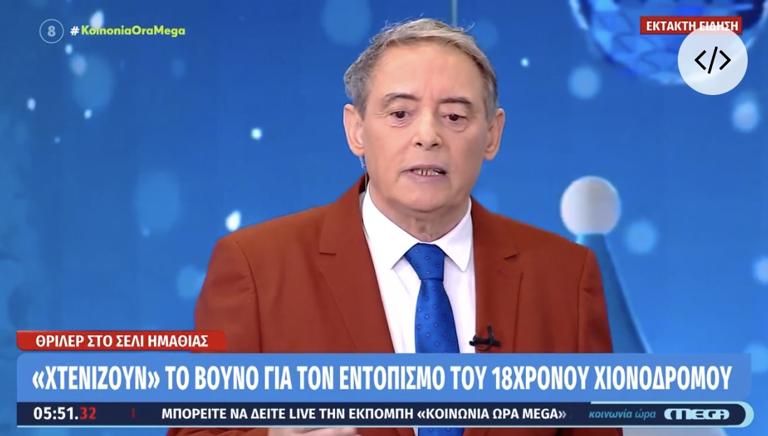 «Είμαι στην βάση του χιονοδρομικού αυτή την στιγμή όλο το βράδυ, οι διασώστες, οι άνδρες της ΕΜΑΚ αλλά και γνωστές του βουνού, επιχειρούν. Η ΕΜΑΚ έχει και σκυλιά και θερμικές κάμερες. Σε μια πρώτη σάρωση δεν είχαμε κάποιο αποτέλεσμα. Επικεντρωνόμαστε σε περιοχές που είναι εκτός πίστας, με βλάστηση και ψηλά δέντρα. Το θετικό είναι ότι το βουνό είναι ομαλό, δεν έχει γκρεμούς. Χιόνι έχουμε εδώ και έναν μήνα, είναι περίπου στους 50 πόντους, αλλά είναι βαρύ χιόνι που έχει ”καθίσει”. Ευελπιστώ ότι με το φως της ημέρας θα διευκολύνει τις ενέργειες των διασωστών», τόνισε και κατέληξε: