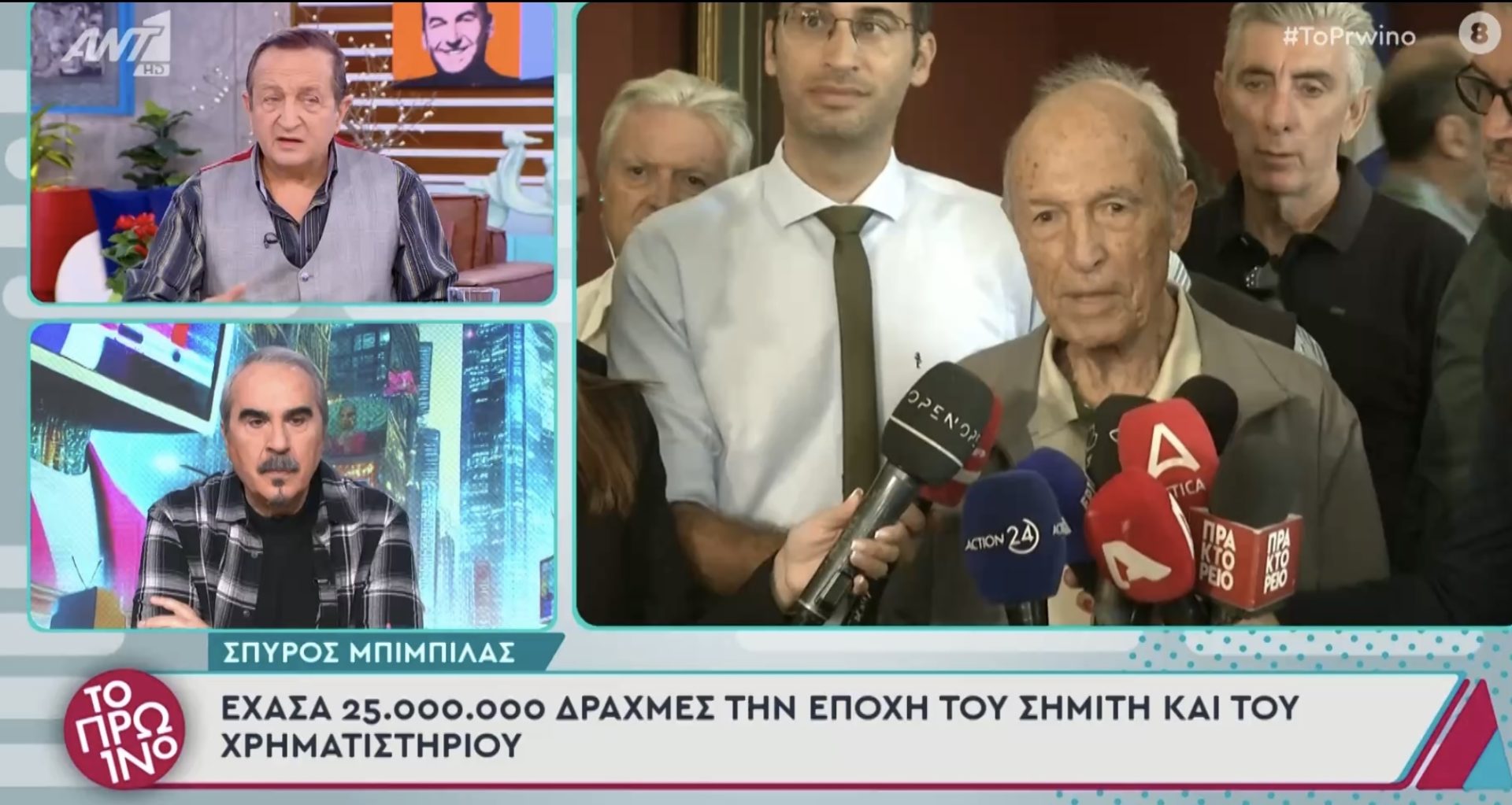 Για πρώτη φορά ωστόσο δήλωσε δημόσια πως ήταν από εκείνους που έχασαν πολλά χρήματα στην – τότε – Σοφοκλέους. «Αυτά που είχα βγάλει από τα σίριαλ χάθηκαν όλα. Έχασα 25 εκατομμύρια δραχμές και για εμένα προσωπικά ήταν ένα πολύ μεγάλο ποσό. Τότε στις τράπεζες υπήρχαν άνθρωποι που καλούσαν τον κόσμο να σπάει ομόλογα και να τα ρίξουν όλα στο χρηματιστήριο » είπε ο κ. Μπιμπίλας.