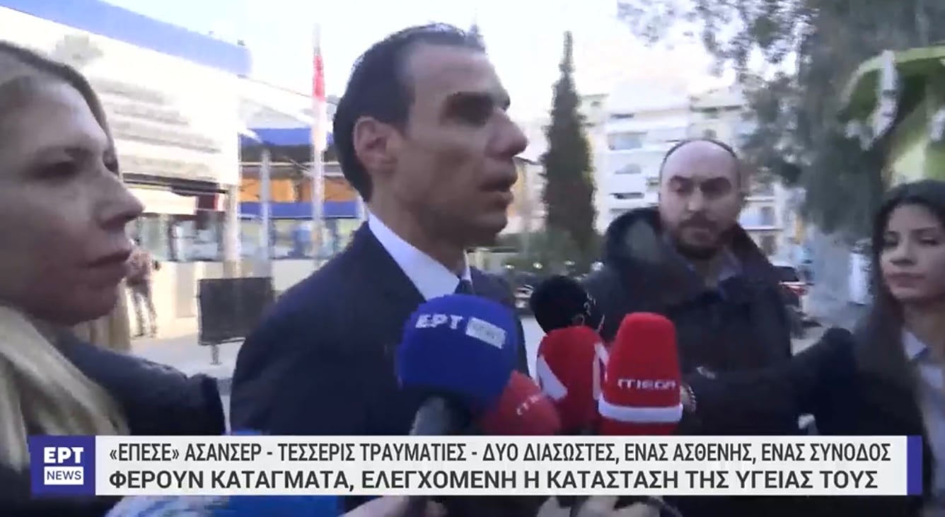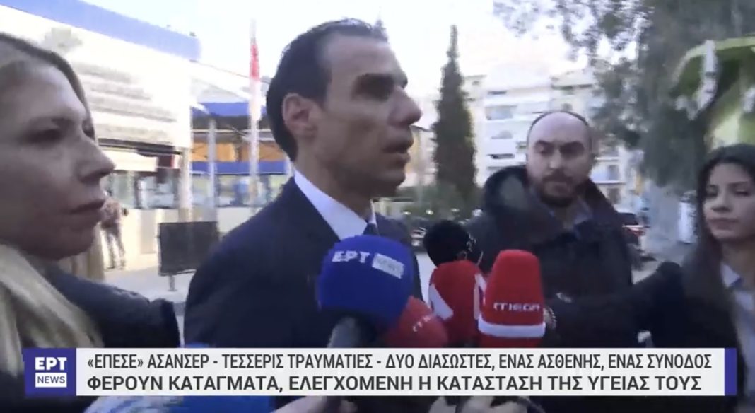 Στον ανελκυστήρα βρίσκονταν τέσσερα άτομα, ένας ασθενής, ο οποίος είχε λάβει εξιτήριο και η συνοδός του, μαζί με δύο διασώστες ιδιωτικού ασθενοφόρου.