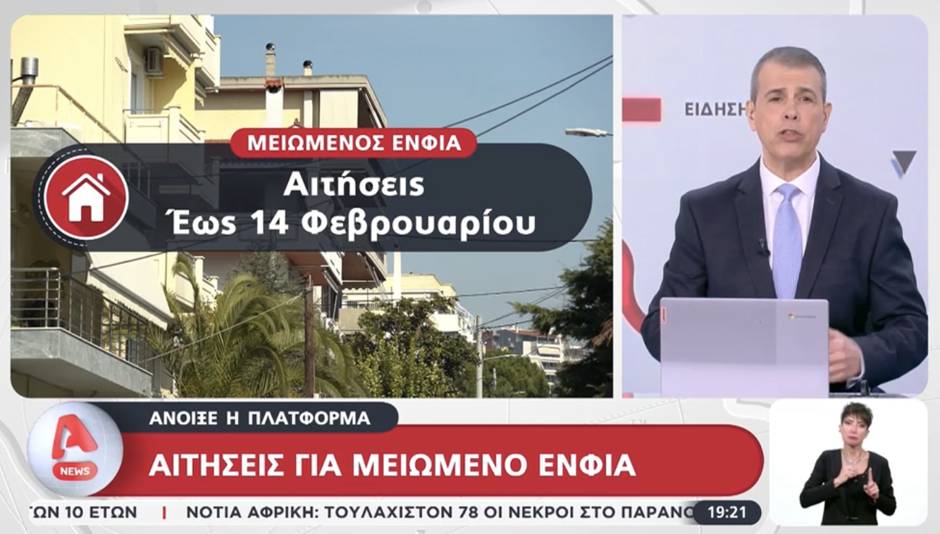 Ξεκίνησε την Τετάρτη (15/1) η υποβολή των αιτήσεων μείωσης του ΕΝΦΙΑ ασφαλισμένων κατοικιών για το 2025.