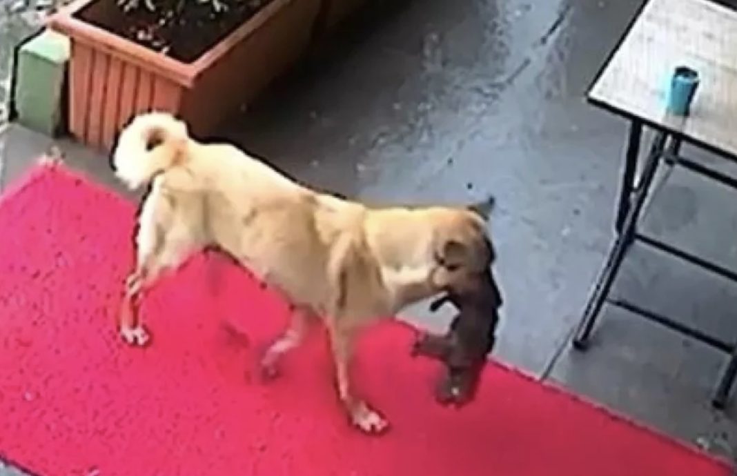 Κάμερες ασφαλείας έχουν καταγράψει τη στιγμή όπου μία αδέσποτη σκυλίτσα άφησε το ετοιμοθάνατο κουτάβι της στην είσοδο μιας κτηνιατρικής κλινικής σε συνοικία της Κωνσταντινούπολης.