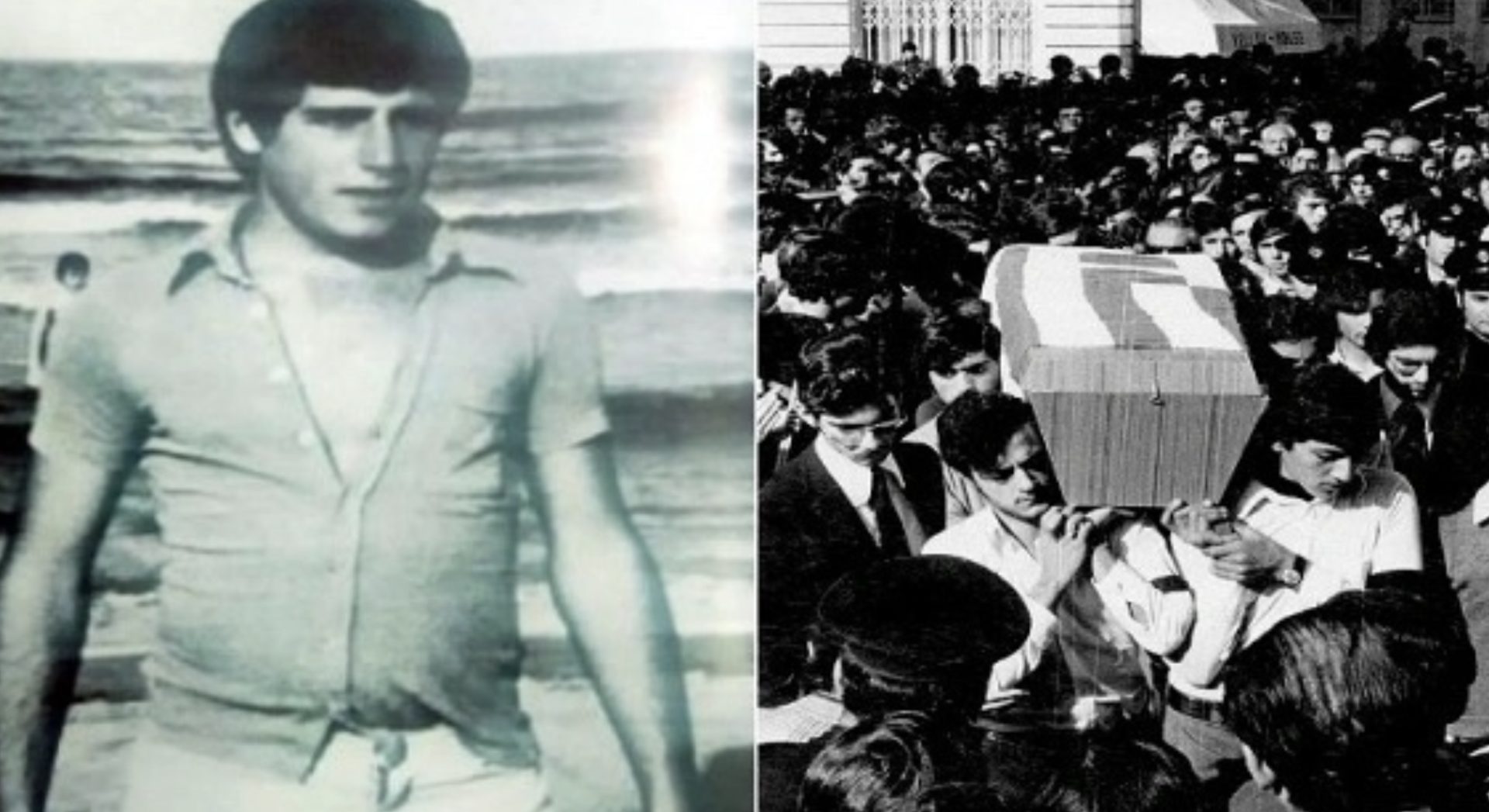 Φωτογραφία: Ο Πανίκος Δημητρίου, 17 χρόνων τότε, Ιανουάριος 1975. Δεξιά η κηδεία του. Φωτογραφία Μηχανή του Χρόνου