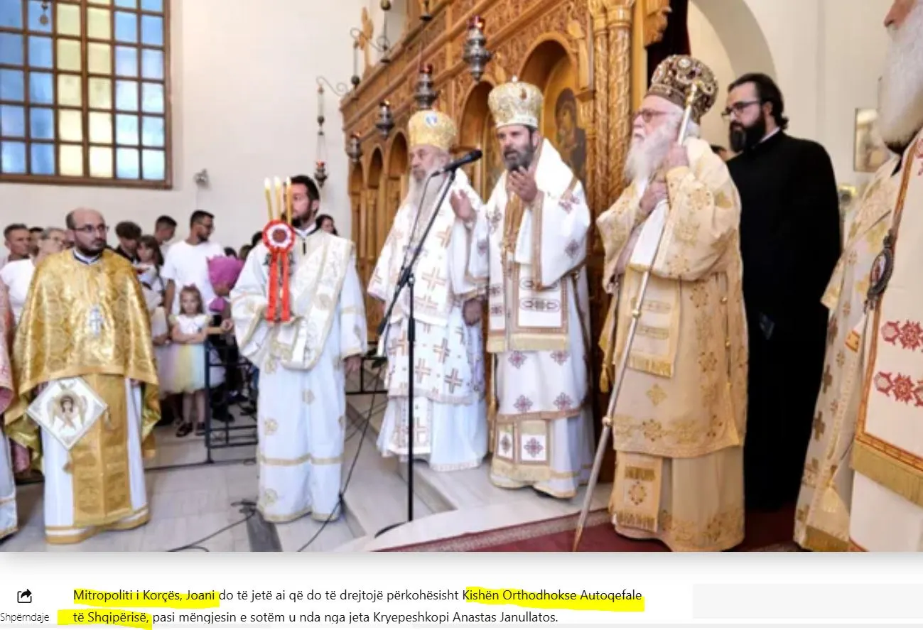 Ο Μητροπολίτης Κορυτσάς Ιωάννης θα είναι αυτός που θα ηγηθεί προσωρινά της Αυτοκέφαλης Ορθόδοξης Εκκλησίας της Αλβανίας, μετά τον θάνατο του Αρχιεπισκόπου Αναστάσιου, γράφουν τα αλβανικά μέσα ενημέρωσης.