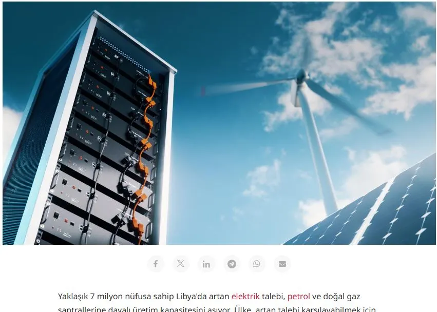 Ο Σύμβουλος του Πρωθυπουργού της κυβέρνησης της Τρίπολης, για θέματα Ηλεκτρισμού και Ανανεώσιμων Πηγών Ενέργειας της Λιβύης Οσάμα αλ Ντουράτ σε συνέντευξη Τύπου ανέφερε ότι επικοινώνησε και είχε συναντήσεις με πολλές τουρκικές εταιρείες σχετικά με τη συνεργασία στις ανανεώσιμες πηγές ενέργειας.