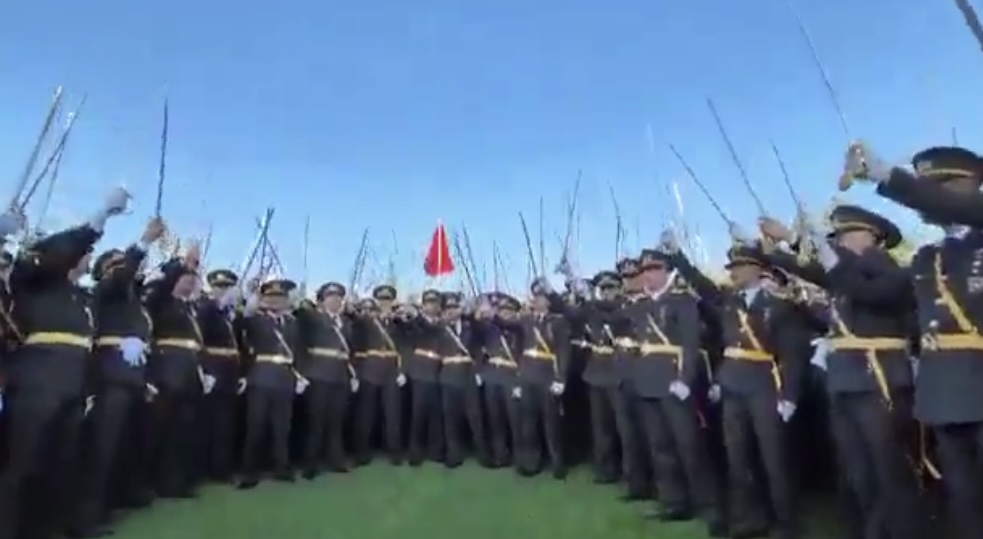 Οι νεαροί αυτοί αξιωματικοί ύψωσαν και σταύρωσαν τα ξίφη τους απαγγέλλοντας τον καταργηθέντα παλαιότερο όρκο, ο οποίος θεωρείται ότι συνδέεται με τις κεμαλικές αρχές του κράτους και κάνει αναφορά στην προάσπιση αυτών από τις ένοπλες δυνάμεις. Επικεφαλής των νεαρών αξιωματικών ήταν η Εμπρού Ερογλου, αριστούχος της τάξης, η οποία υπαγόρευε στους συμφοιτητές της τον όρκο και αυτοί στη συνέχεια τον επαναλάμβαναν. Παράλληλα, όλοι μαζί οι απόφοιτοι φώναξαν το σύνθημα «Είμαστε οι στρατιώτες του Μουσταφά Κεμάλ (Ατατούρκ)» υπό την κλαγγή των σπαθιών τους που χτυπούσαν μεταξύ τους.