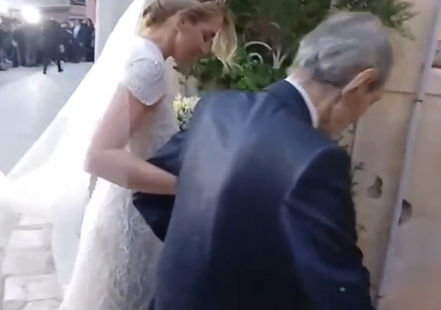 Η νύφη έφτασε στην εκκλησία φορώντας ένα ρομαντικό, κομψό νυφικό με πέπλο, ενώ νωρίτερα, ο Νικόλαος Ντε Γκρες έφτασε συνοδευόμενος από την μητέρα του τέως βασίλισσα Σοφία.