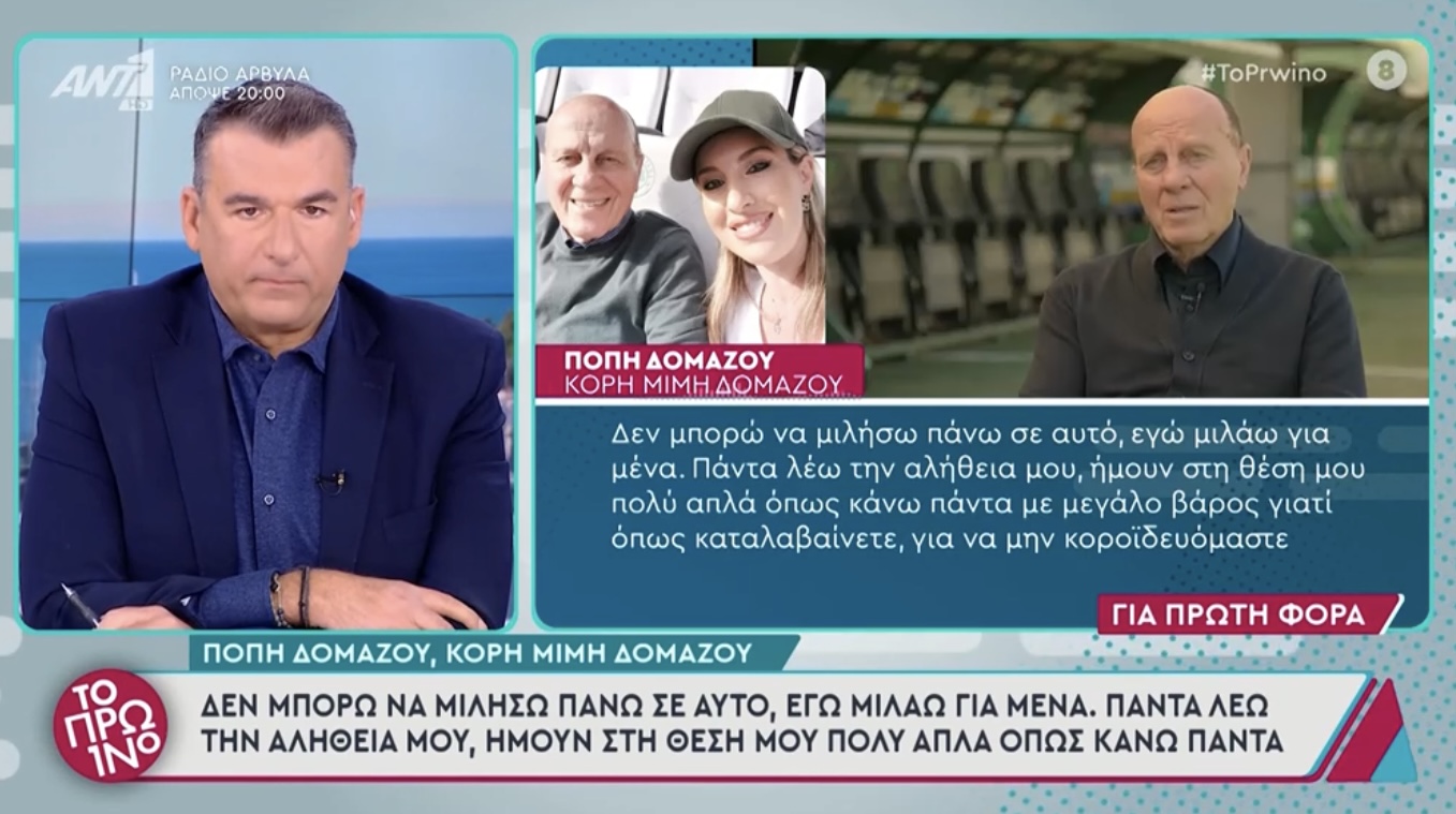 Εξηγήσεις σχετικά με την παρουσία της σε τιμητικό αγώνα προς τιμήν του πατέρας της, Μίμη Δομάζου έκανε η κόρη του, Πόπη μετά την «αιχμηρή» ανάρτηση που έκαναν οι αδελφές της Ράνια και Ευαγγελία στην οποία ανέφεραν πως δεν τις προσκάλεσε κανείς.