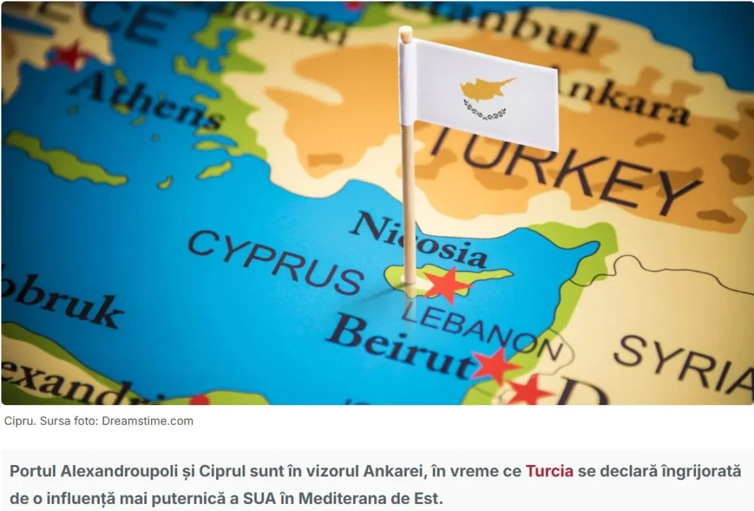 Το λιμάνι της Αλεξανδρούπολης και η Κύπρος βρίσκονται στο στόχαστρο της Άγκυρας, καθώς η Τουρκία δηλώνει ότι ανησυχεί για την ισχυρότερη αμερικανική επιρροή στην Ανατολική Μεσόγειο, γράφει ο Ιούλιος Βλαντέσκου στο ρουμανικό portal ‘evz’.