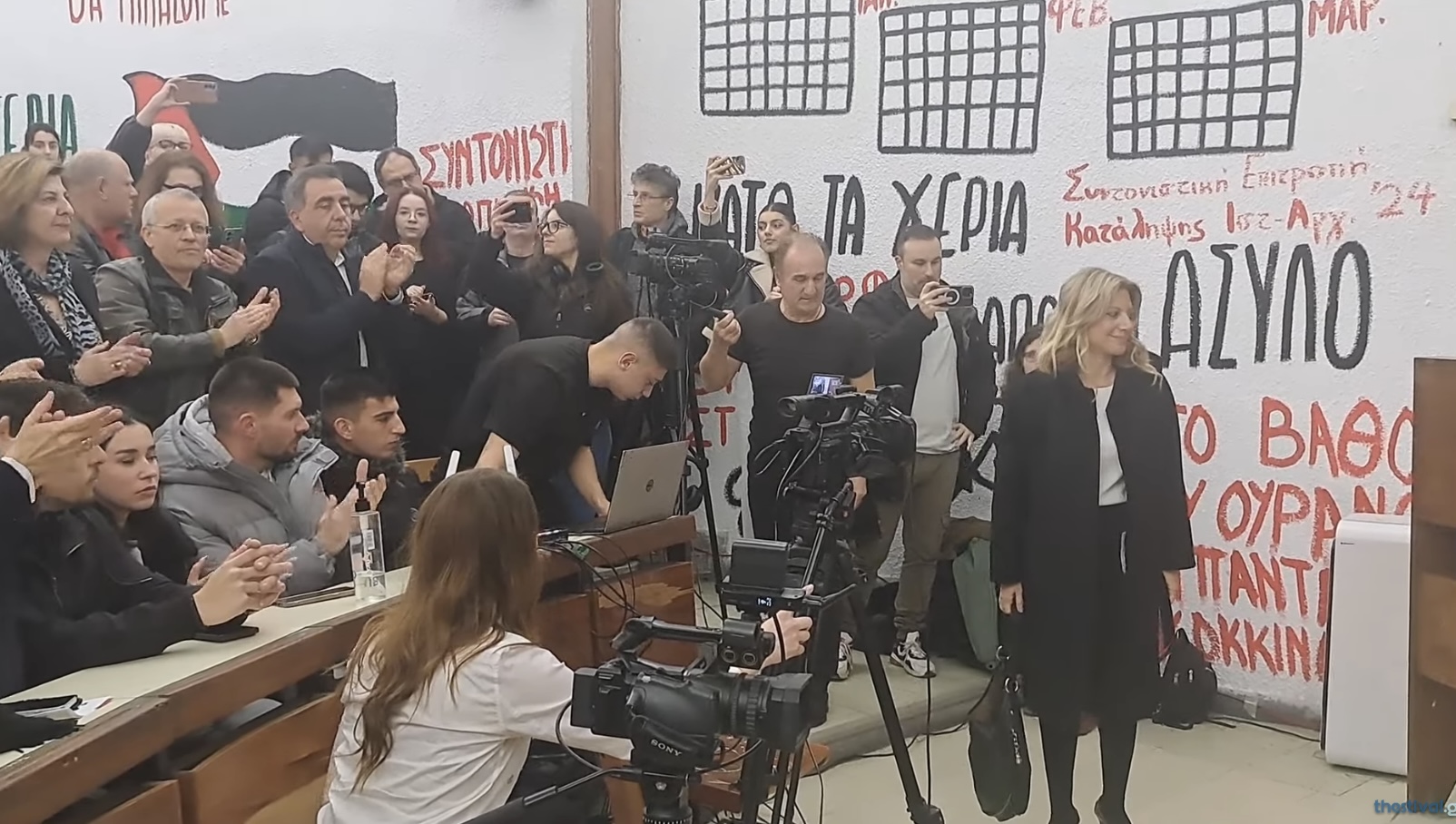 Με παρατεταμένο χειροκρότημα υποδέχτηκαν οι παριστάμενοι την Μαρία Καρυστιανού και τον Παύλο Ασλανίδη στο αμφιθέατρο της Φιλοσοφικής Σχολής του ΑΠΘ, όπου το ανεξάρτητο φοιτητικό σχήμα diversitas πραγματοποίησε το βράδυ της Παρασκευής εκδήλωση για το πολύνεκρο έγκλημα στα Τέμπη.
