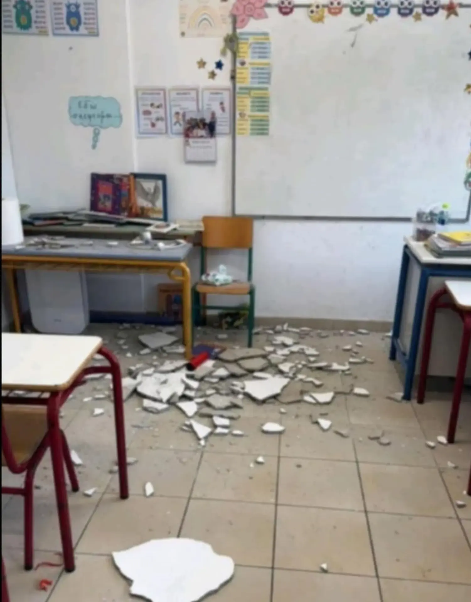 Παραλίγο να σημειωθούν τραυματισμοί σήμερα το πρωί σε τάξη του 27ου δημοτικού σχολείου στις Αλυκές Βόλου καθώς έπεσαν σοβάδες από το ταβάνι της αίθουσας.