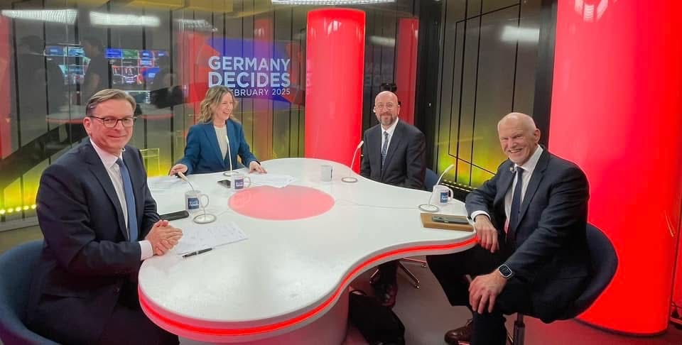 εκπομπή του Euronews, στις Βρυξέλλες, για την αποτίμηση του αποτελέσματος των γερμανικών εκλογών, μαζί με τον πρώην Πρόεδρο του Ευρωπαϊκού Συμβουλίου και πρώην Πρωθυπουργό του Βελγίου, Charles Michel και τoν Διευθυντή του Euronews, Claus Strunz.