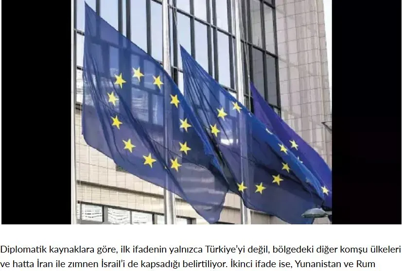 Σύμφωνα με διπλωματικές πηγές, η πρώτη δήλωση περιλαμβάνει όχι μόνο την Τουρκία αλλά και άλλες γειτονικές χώρες της περιοχής, ακόμη και το Ιράν και, σιωπηρά, το Ισραήλ.