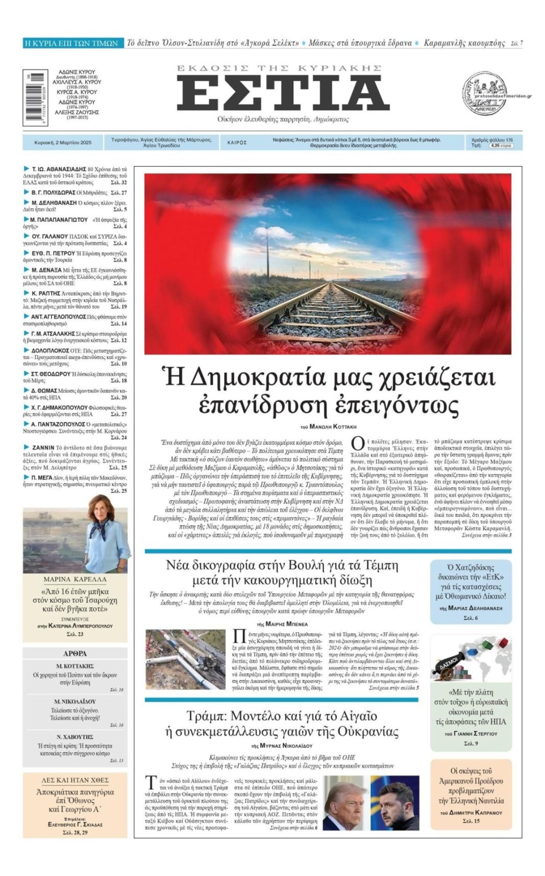 Στην Εστία της Κυριακής: Ἡ Δημοκρατία μας χρειάζεται ἐπανίδρυση ἐπειγόντως
