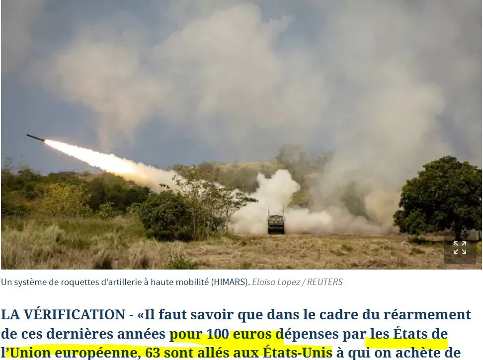 «Να σημειωθεί ότι στο πλαίσιο του επανεξοπλισμού των τελευταίων ετών, για κάθε 100 ευρώ που ξοδεύουν τα κράτη της Ευρωπαϊκής Ένωσης, 63 πήγαιναν στις Ηνωμένες Πολιτείες από τις οποίες αγοράζουμε όπλα», σύμφωνα με τον βουλευτή του «La France insoumise»- LFI, Φρανσουά Πικεμάλ.