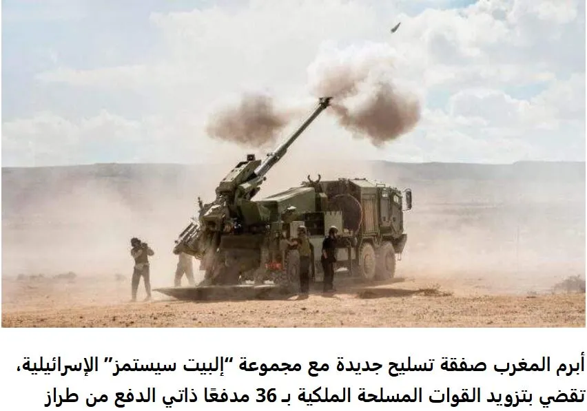 Το Μαρόκο έχει συνάψει νέα συμφωνία όπλων με τον ισραηλινό όμιλο Elbit Systems, η οποία προβλέπει την προμήθεια των Ενόπλων Δυνάμεων του Βασιλείου, με 36 αυτοκινούμενα πυροβόλα Atmos 2000, σύμφωνα με τη γαλλική εφημερίδα La Tribune.