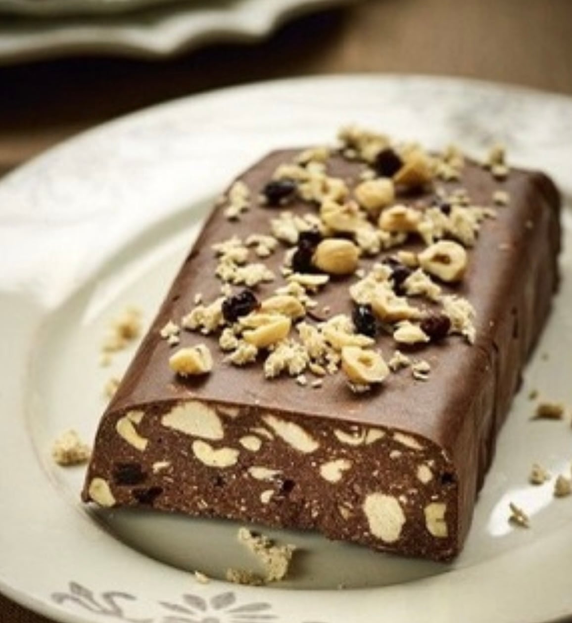 Ντύνετε με χαρτί ψησίματος ή με μεμβράνη μια μακρόστενη φόρμα του κέικ και αδειάζετε μέσα το μίγμα. Το σκεπάζετε με το περίσσευμα του χαρτιού ψησίματος ή της μεμβράνης και το αφήνετε στο ψυγείο για μερικές ώρες να σταθεροποιηθεί καλά. Αν βιάζεστε, το βάζετε για 1 ώρα στην κατάψυξη.