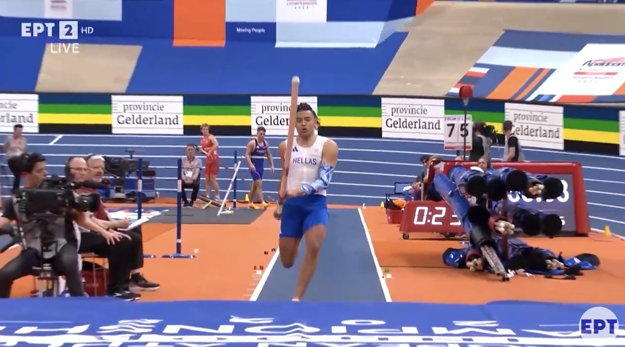 Το χρυσό μετάλλιο στο άλμα επί κοντώ στο Ευρωπαϊκό πρωτάθλημα κλειστού στίβου… κόπηκε στα δύο. Ο Καραλής και ο Ολλανδός Μένο Φλον απέτυχαν και στις τρεις προσπάθειες στα 5μ.95 και με 5μ.90 θα μοιραστούν το χρυσό αφού είχαν τις ίδιες αποτυχημένες προσπάθειες σε προηγούμενα άλματα.