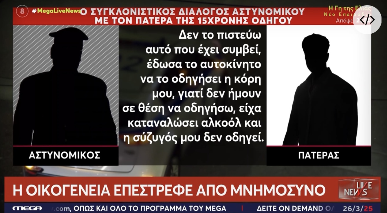 Στην εκπομπή «Live News» του Mega μεταδόθηκε ο διάλογος που είχε ο πατέρας της ανήλικης με αστυνομικό που έσπευσε στο σημείο μετά το συμβάν.