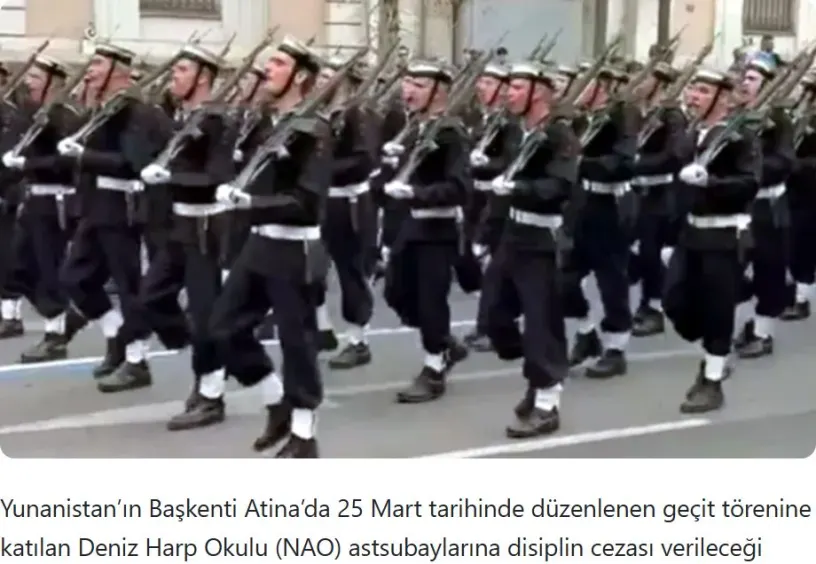 Πειθαρχική ποινή θα επιβληθεί στους σπουδαστές της Σχολής Μονίμων Υπαξιωματικών Ναυτικού (ΣΜΥΝ) που συμμετείχαν στην παρέλαση που πραγματοποιήθηκε στην Αθήνα, την πρωτεύουσα της Ελλάδας, στις 25 Μαρτίου, γράφει σήμερα η τουρκική Sözcü.
