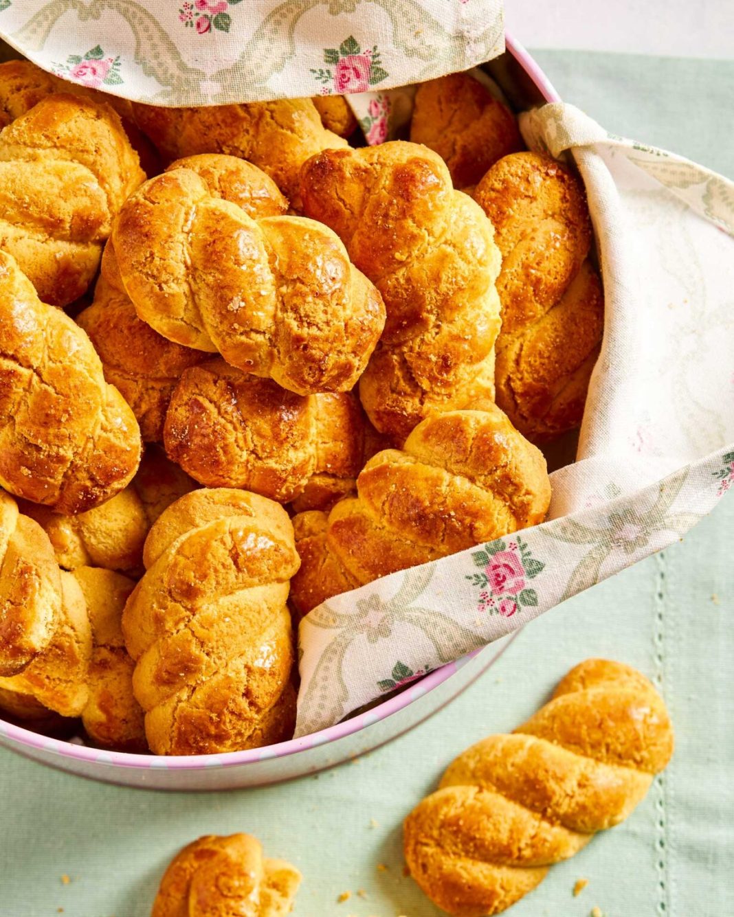 Πλάθουμε τα κουλουράκια πλεξούδες ή σε όποιο σχήμα θέλουμε.