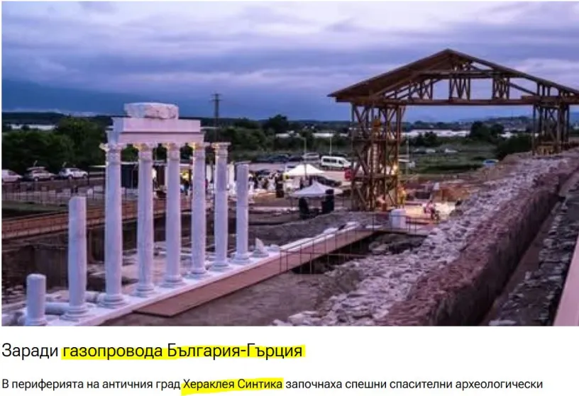 Στα περίχωρα της αρχαίας πόλης της Ηράκλειας Σιντικής, έχει ξεκινήσει έκτακτη αρχαιολογική έρευνα διάσωσης λόγω της επέκτασης του αγωγού φυσικού αερίου Βουλγαρίας-Ελλάδας.
