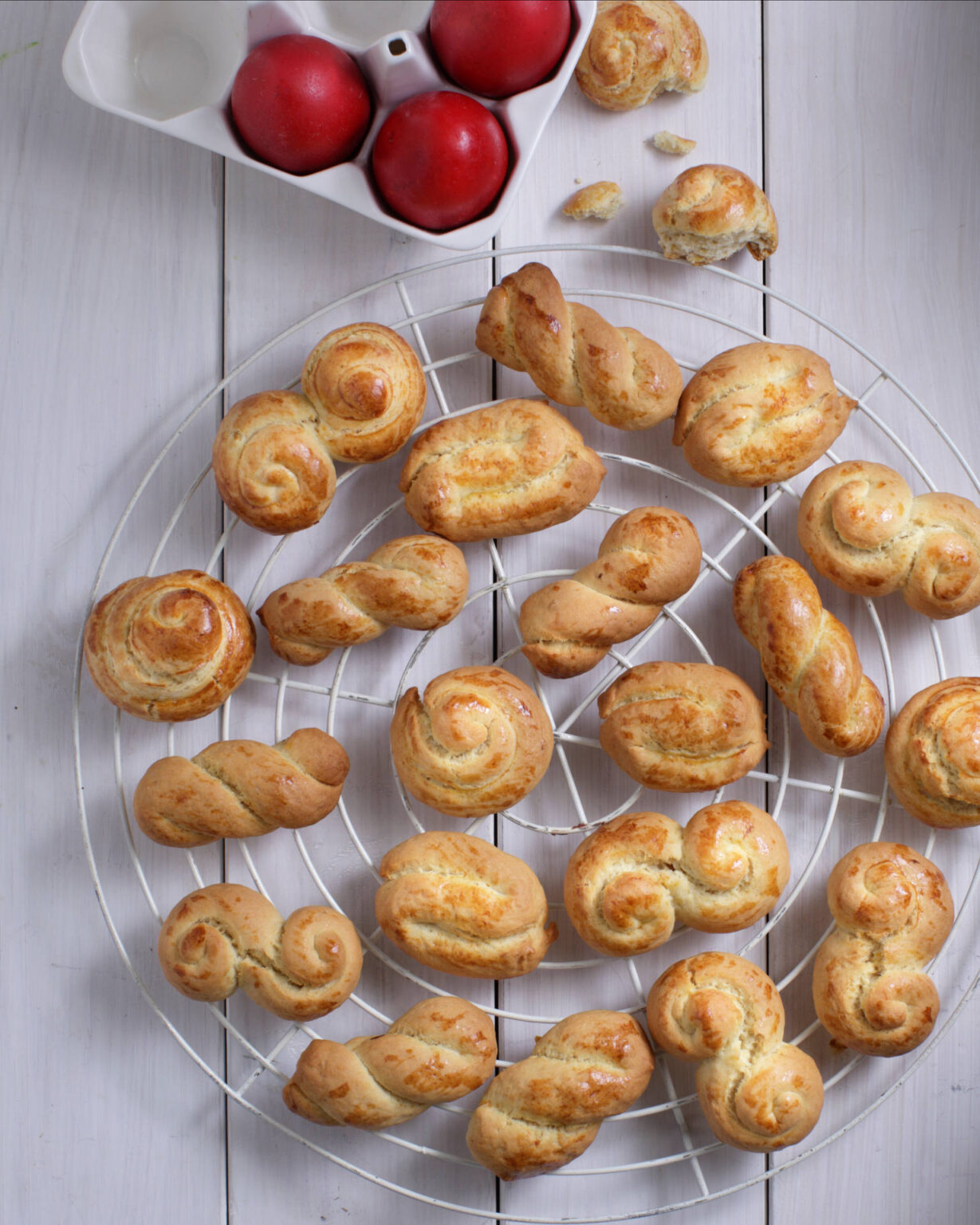 Ψήνουμε τα Πασχαλινά κουλουράκια στον φούρνο μέχρι να ροδίσουν, για περίπου 30 λεπτά.