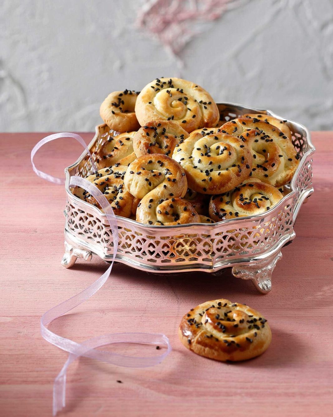Αλείφουµε µε τον κρόκο, πασπαλίζουμε με το μαυροκούκι και το σουσάμι και ψήνουµε για περίπου 20 λεπτά, µέχρι να φουσκώσουν και να ροδίσουν.