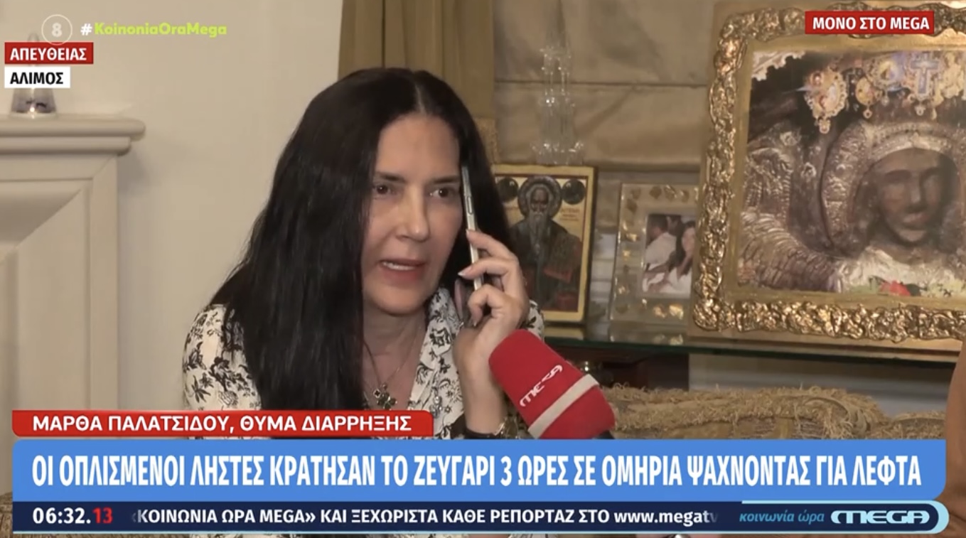 Η κ. Παλατίδου επεσήμανε πως οι ληστές τους φώναζαν πως δεν είναι πλούσιοι σαν εκείνους, με την ίδια να προσπαθεί να τους πείσει πως δεν είναι αλήθεια όσα βλέπουν.