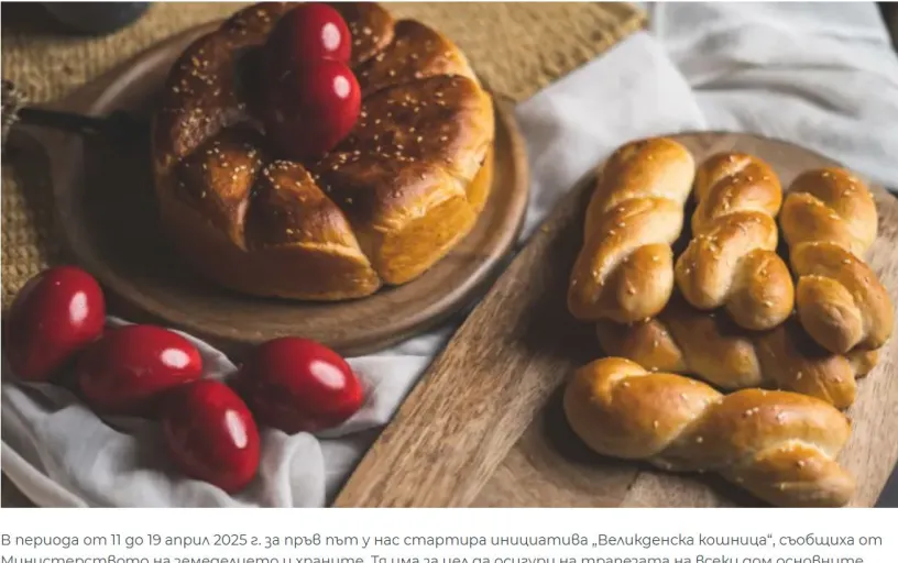 «Την περίοδο από 11 έως 19 Απριλίου 2025, για πρώτη φορά στη χώρα μας έχει δρομολογηθεί μια πρωτοβουλία «Πασχαλινό καλάθι», ανακοίνωσε το υπουργείο Γεωργίας και Τροφίμων. Στοχεύει να παρέχει στο τραπέζι κάθε σπιτιού τα κύρια πασχαλινά προϊόντα που είναι παραδοσιακά για τη χώρα μας, σε τιμές προσιτές στον καταναλωτή, χωρίς συμβιβασμούς στην ποιότητα», αναφέρει η bntnews.