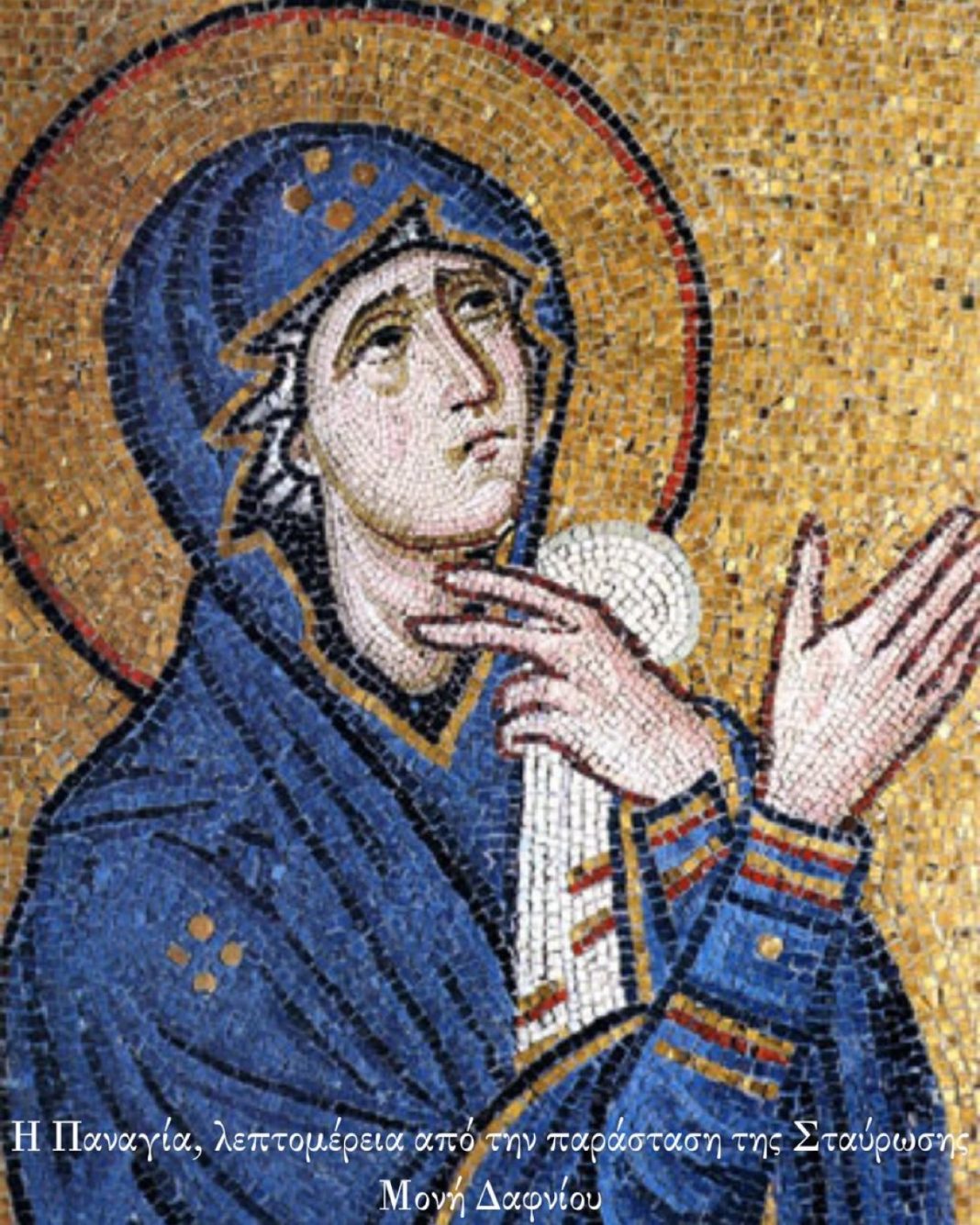 📸: Η Παναγία, λεπτομέρεια από την παράσταση της Σταύρωσης, Μονή Δαφνίου