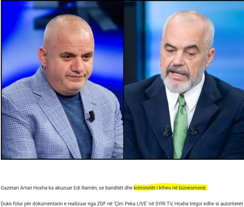 Ο δημοσιογράφος Αρτάν Χότζα κατηγόρησε τον πρωθυπουργό της Αλβανίας, Έντι Ράμα, ότι μετατρέπει ληστές και εγκληματίες σε επιχειρηματίες.