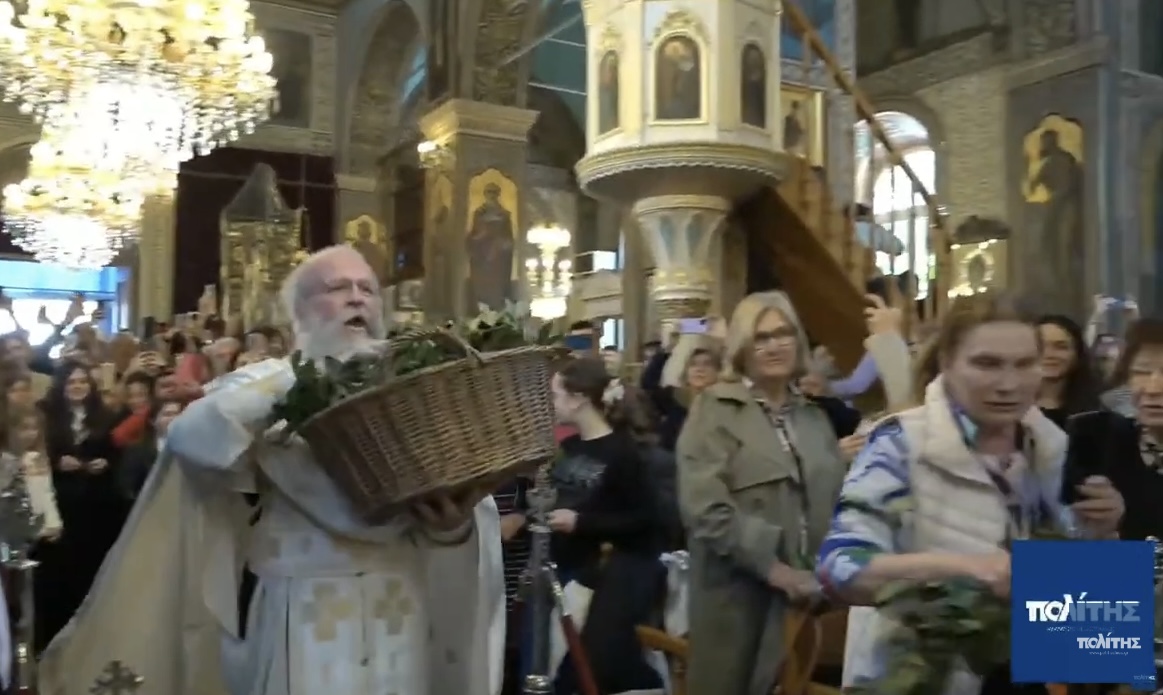 Οι πιστοί σε πλήρη συμμετοχή χτυπούν τα στασίδια ενώ σείονται οι πολυέλαιοι.