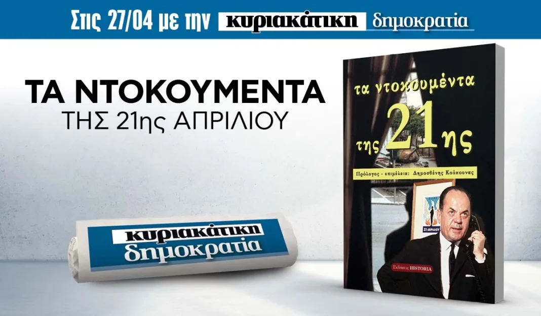 MEDIAΤην Κυριακή 27/04 με την κυριακάτικη «δημοκρατία»: Τα ντοκουμέντα της 21ης Απριλίου25/04/2025 - 7:40πμΔΙΑΒΑΣΤΕ ΕΠΙΣΗΣ Το Σάββατο 20/12 με την Εspresso: Κλασσικά μυθιστορήματαΤα πρωτοσέλιδα των εφημερίδων σήμερα ΠαρασκευηΔιαβάστε όλο το περιοδικό ΕπίκαιραΤην Κυριακή 21/12 με την Εστία της Κυριακής: Συλλεκτικό ημερολόγιο 2026Την Κυριακή 21/12 με την κυριακάτικη «δημοκρατία»: Το ευλογημένο ημερολόγιο 2026Τα πρωτοσέλιδα των εφημερίδων σήμερα ΠέμπτηΤo Σάββατο 20/12 με την Εστία: Κλασσικά παραμύθιαΤο Σάββατο 20/12 με την «δημοκρατία»: Φως στο σκοτεινό δωμάτιο Στις 27.04 με την κυριακάτικη «δημοκρατία»: Τα ντοκουμέντα της 21ης ΑπριλίουΈνα αποκαλυπτικό βιβλίο, με τα πιο κρίσιμα γεγονότα της ταραγμένης επταετίας • Μαρτυρίες και σημαντικά στοιχεία ρίχνουν φως στην περίοδο της δικτατορίας.ΚΥΡΙΑΚΑΤΙΚΗ ΔΗΜΟΚΡΑΤΙΑ ΑΦΗΣΤΕ ΜΙΑ ΑΠΑΝΤΗΣΗ Ακύρωση απάντησης Σχόλιο:εισάγετε το σχόλιό σας! Όνομα:*παρακαλώ εισάγετε το όνομά σας εδώ Email:*έχετε εισάγει εσφαλμένη διεύθυνση ηλεκτρονικού ταχυδρομείου!παρακαλώ εισάγετε εδώ την ηλεκτρονική σας διεύθυνση αποθηκεύστε το όνομα, το ηλεκτρονικό ταχυδρομείο και τον ιστότοπό μου σε αυτό το πρόγραμμα περιήγησης για την επόμενη φορά που θα σχολιάσω. ΔΗΜΟΦΙΛΗ Πανικός στην Τουρκία για την φρεγάτα Belharra «Κίμων»Ο Αντιπλοίαρχος Ιωάννης Κιζάνης είναι ο έμπειρος κυβερνήτης της φρεγάτας ΚιμωνΡωσία: Μια «τριπλή κίνηση» εναντίον της Τουρκίας δημιουργείται στην Ανατολική ΜεσόγειοΤουρκία: Μεγάλη προδοσία από αραβική χώρα που μας αποκαλεί «φίλους» της!“Χαμένα Μηνύματα”; Η ανατροπή στην υπόθεση Μαζωνάκη που κανείς δεν περίμενε!Κεραυνοί του Πάνου Καμμενου: Η Ελλάδα μπήκε στην κρίση για 25 δις αλλά για τον Ζελενσκι βρήκαν 90 διςΔικαστικό σκάνδαλο στην δική του πατρός Αντωνίου!Ισλάμ: Τι είδους θεός δίνει για ανταμοιβή σκλάβες του σεξ;