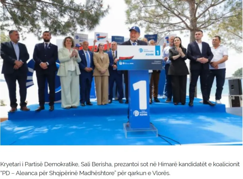 Ο Πρόεδρος του Δημοκρατικού Κόμματος, Σαλί Μπερίσα, παρουσίασε σήμερα στη Χιμάρα τους υποψηφίους του συνασπισμού «DP – Συμμαχία για τη Μεγαλοπρεπή Αλβανία» για την περιφέρεια της Αυλώνας.