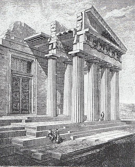 Αλλά οι λίθοι από τους τοίχους, τους κίονες και τα επιστήλια χρησιμοποιήθηκαν για την ανοικοδόμηση του νότιου τείχους της Ακρόπολης.
