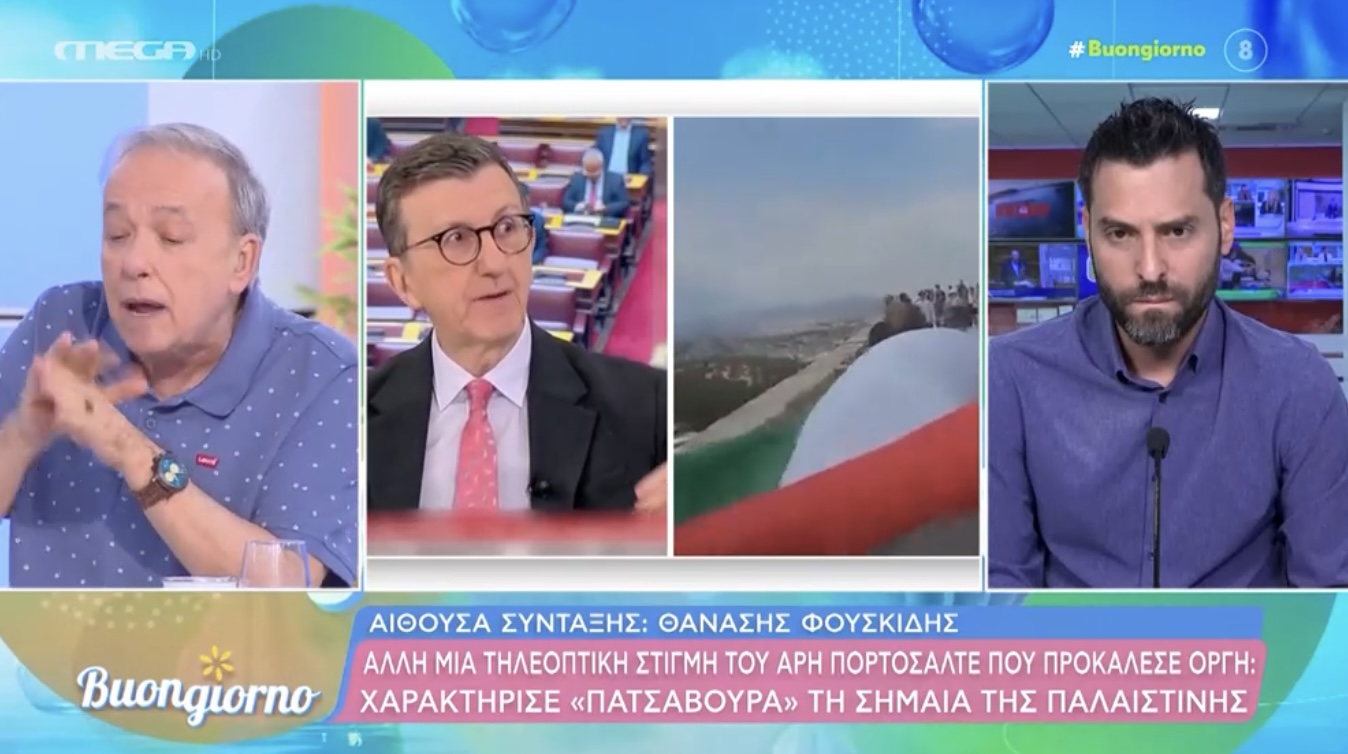 Εξεμάνη την Παρασκευή ο Ανδρέας Μικρούτσικος με τις δηλώσεις του Άρη Πορτοσάλτε για την παλαιστινιακή σημαία. Ο δημοσιογράφος του ΣΚΑΪ την χαρακτήρισε «πατσαβούρα» σχολιάζοντας τα μέλη της Νέας Αριστεράς που την άπλωσαν στην Ακρόπολη σε ένδειξη διαμαρτυρίας για την Γάζα.