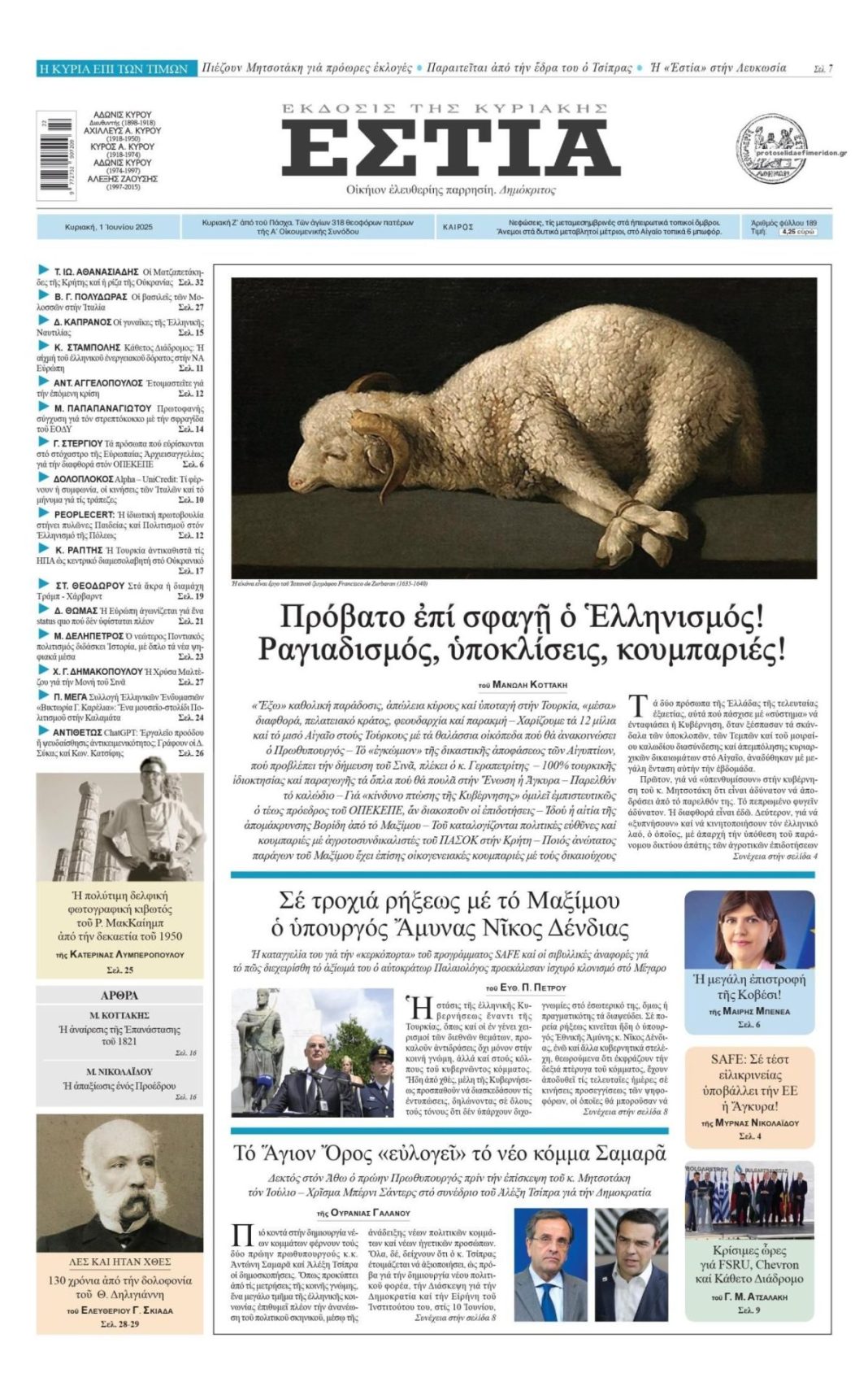 Πρῶτον, γιά νά «υπενθυμίσουν» στην κυβέρνηση τοῦ κ. Μητσοτάκη ὅτι εἶναι ἀδύνατον νά ἀπο- δράσει ἀπό τό παρελθόν της. Το πεπρωμένο φυγεῖν ἀδύνατον. Ἡ διαφθορά εἶναι ἐδῶ. Δεύτερον, για να «ξυπνήσουν» καί νά κινητοποιήσουν τόν ἑλληνικό λαό, ὁ ὁποῖος, μέ ἀπαρχή τήν ὑπόθεση τοῦ παράνομου δικτύου ἀπάτης τῶν ἀγροτικῶν επιδοτήσεων. Συνέχεια στην Εστια που κυκλοφορεί αυτή την Κυριακή.
