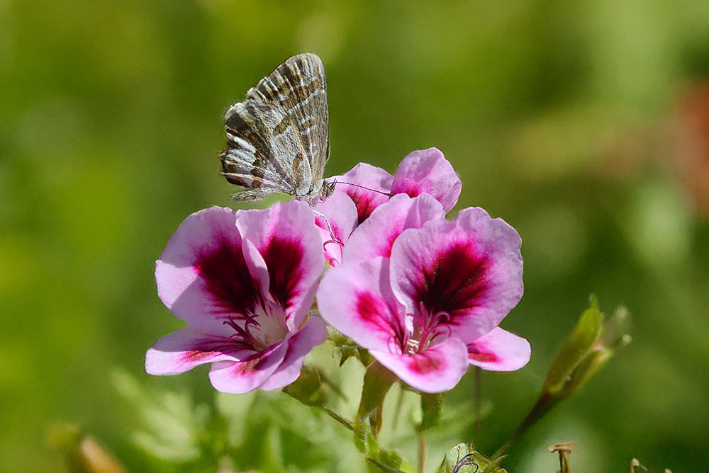 Η πεταλούδα του γερανιού (Cacyreus marshalli), γνωστή στο εξωτερικό ως geranium bronze, έρχεται από τη Νότια Αφρική που είναι η χώρα καταγωγής και του γερανιού.