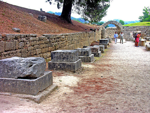 Ζάνες: Τα χάλκινα αγάλματα του θεού Δία στην είσοδο του σταδίου στην Αρχαία Ολυμπία