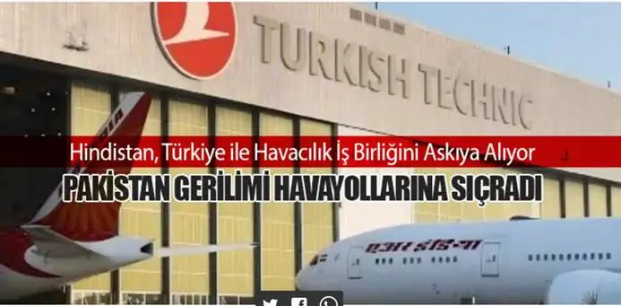 «Η Ινδία αναστέλλει τη συνεργασία της με την Τουρκία στον τομέα των αερομεταφορών, καθώς οι εντάσεις στο Πακιστάν εξαπλώνονται στις αεροπορικές εταιρείες», γράφει το τουρκικό δημοσίευμα (airlinehaber)
