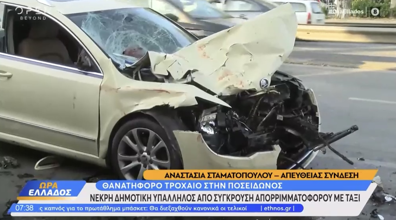 Σύμφωνα με τα νέα στοιχεία που έρχονται στο φως σχετικά με το δυστύχημα, λίγο μετά τις 7 το πρωί το ταξί που κινούνταν επί της Λεωφόρου Ποσειδώνος στο ρεύμα προς Πειραιά, επιχείρησε, σύμφωνα με αυτόπτες μάρτυρες, να περάσει από τη μεσαία λωρίδα το απορριμματοφόρο το οποίο εκείνη τη στιγμή είχε σταματήσει για την αποκομιδή στο ύψος της λεωφόρου Καλαμακίου. Άλλες μαρτυρίες λένε πως το ταξί δεν επιχείρησε προσπέραση.