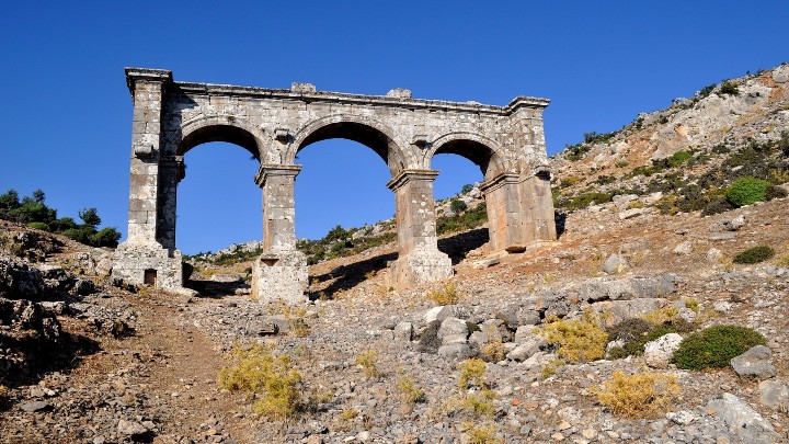 Τα ερείπια χρονολογούνται κυρίως από τη Ρωμαϊκή και βυζαντινή περίοδο, με, ωστόσο, την ύπαρξη ορισμένων χρονολογούμενων από την πρότερη Ελληνιστική περίοδο. Καλύτερα διατηρημένο εξ’ αυτών είναι η χρονολογούμενη από τον 3ο αιώνα μ.Χ. τρίτοξη είσοδος της πόλης, την οποία παλαιότερα κοσμούσαν τέσσερα αγάλματα. Μεταξύ των υπολοίπων κτιρίων περιλαμβάνονται ένα μεγάλου μεγέθους νυμφαίο και λουτρά, καθώς και μια εκτεταμένη περιοχή κατοικιών. Επίσης υπάρχει μεγάλος αριθμός ταφικών μνημείων.