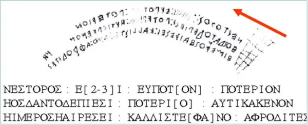 «Του Νέστορα… το κύπελλο είναι καλό για να πίνεις. Αλλά όποιος πιει από το κύπελλο αυτό, αμέσως θα καταληφθεί από την επιθυμία έρωτα για την όμορφη στεφανωμένη Αφροδίτη».