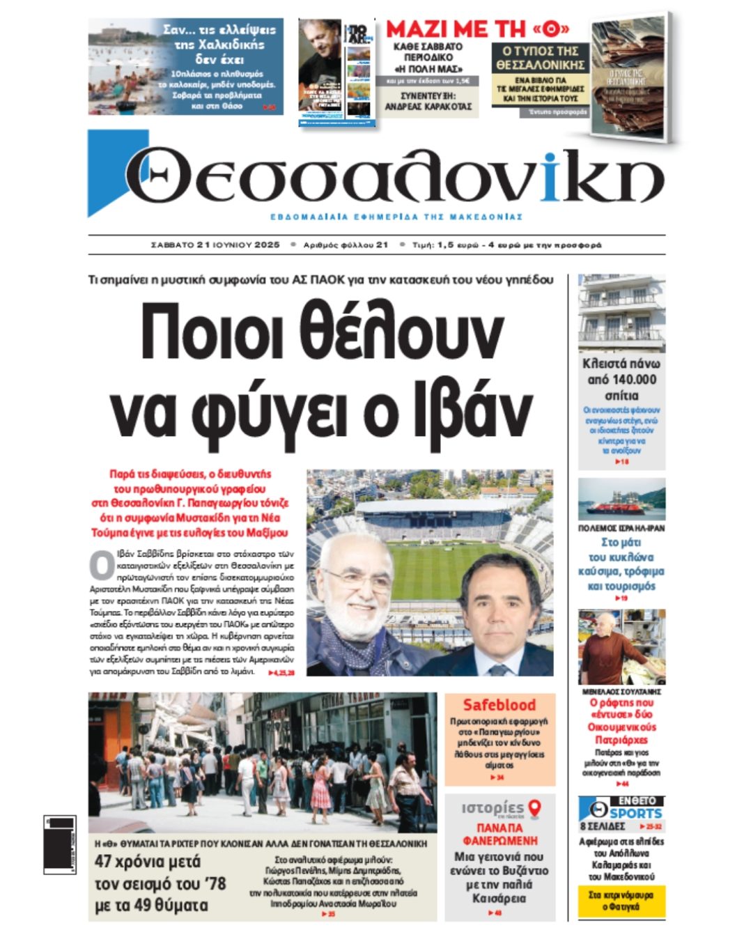 Το Σάββατο 21.06 η εφημερίδα “ΘΕΣΣΑΛΟΝΙΚΗ” παρουσιάζει: