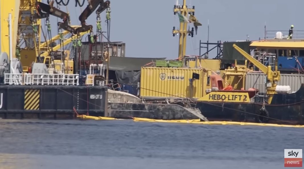 Η διαδικασία της ανάσυρσής του κατέστη ευκολότερη αφού το μήκους 72 μέτρων κατάρτι του κόπηκε με χρήση ενός τηλεχειριζόμενου εργαλείου και αφέθηκε στο βυθό.